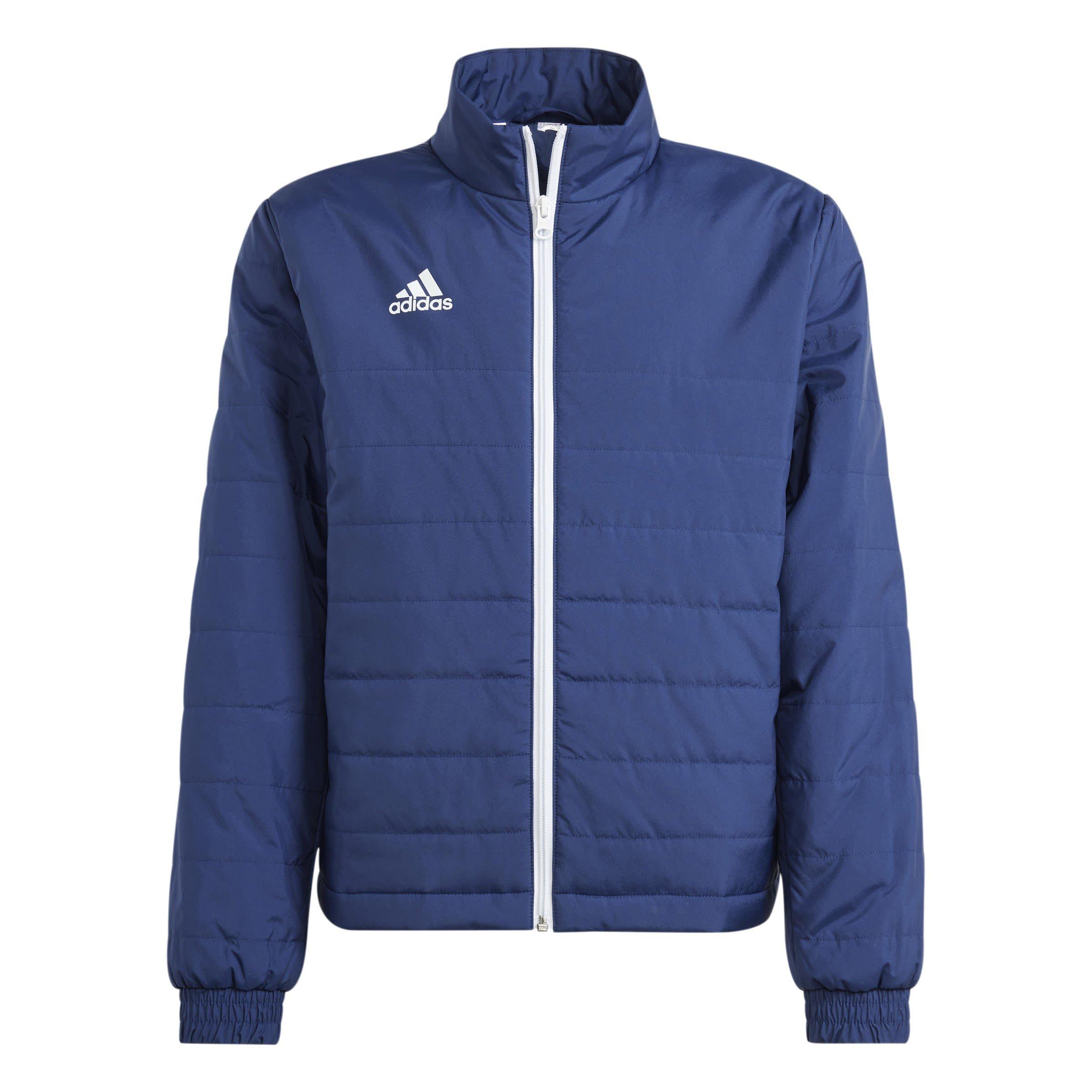 La chaqueta acolchada ligera adidas Entrada 22 mantiene a los jóvenes aficionados cómodos en días fríos. Este abrigo acolchado ligero para niños cuenta con un cuello alzado, cierre de cremallera y bolsillos frontales para lo esencial, todo terminado con el logo de adidas en el pecho.