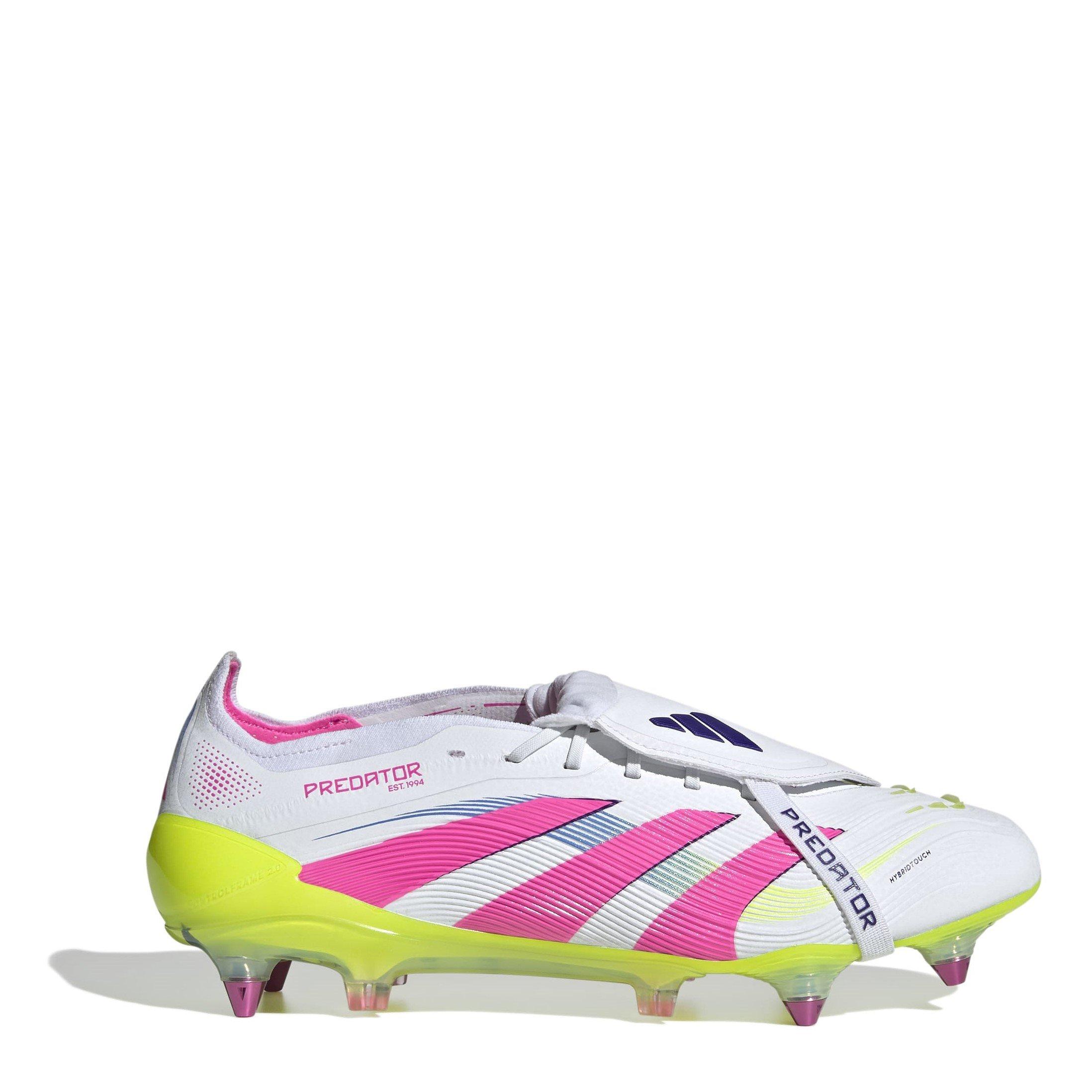 Toma el control del campo con las botas de fútbol adidas Predator Elite con lengüeta plegable para terreno blando. Confeccionadas con una parte superior HybridTouch para un control del balón superior y aletas Strikeskin de goma para una precisión milimétrica, están diseñadas para jugar en terreno blando. Perfectas para días de partido de alta presión, estas botas ofrecen un diseño elegante y un rendimiento fiable para ayudarte a mantenerte por delante de la competencia.