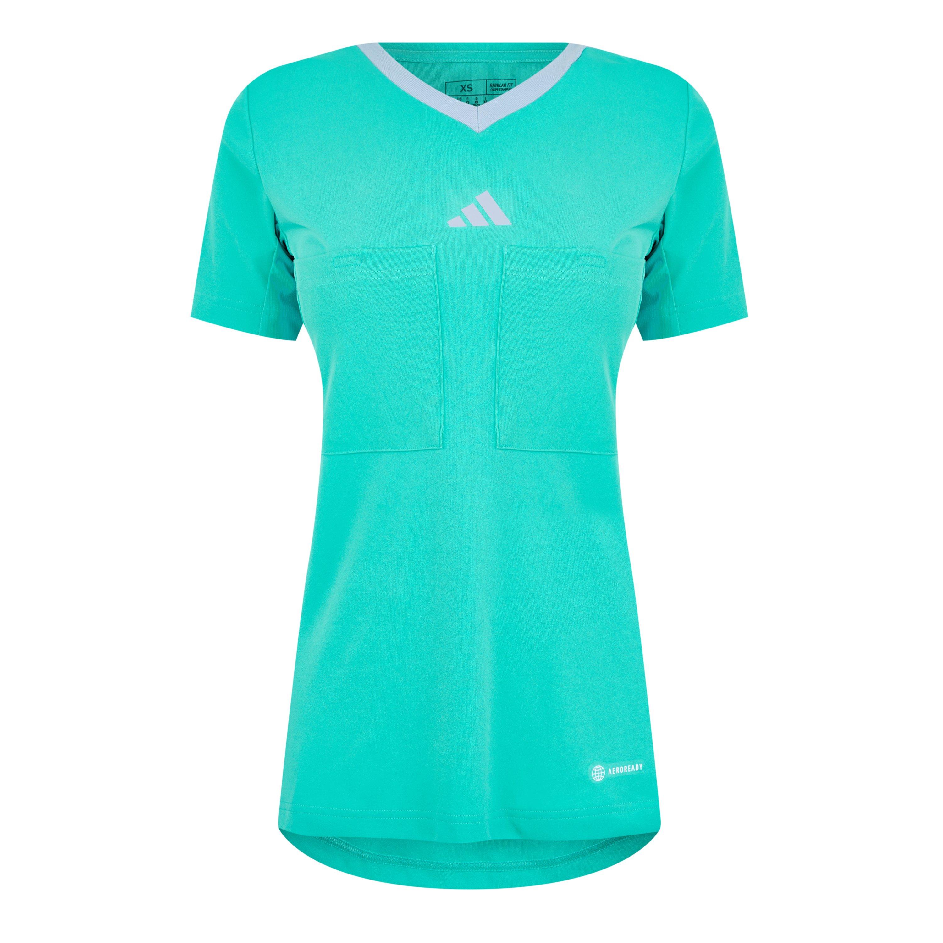 Camiseta de árbitro adidas de clase mundial Referee 22 que se usará en la Copa Mundial FIFA 22. Construida con información clave de los árbitros de la FIFA para permitir el máximo movimiento del brazo sin que la camiseta se salga de los pantalones cortos.