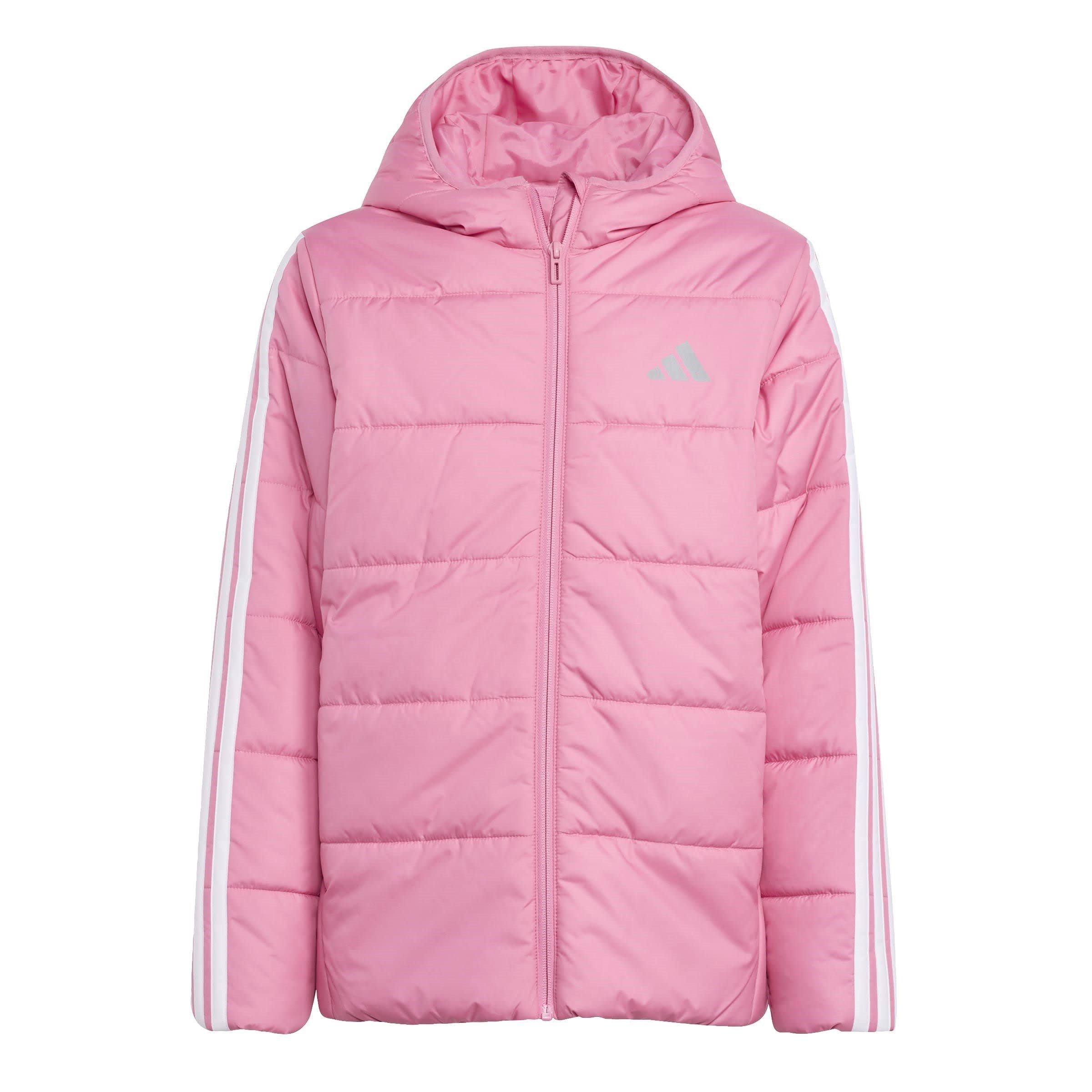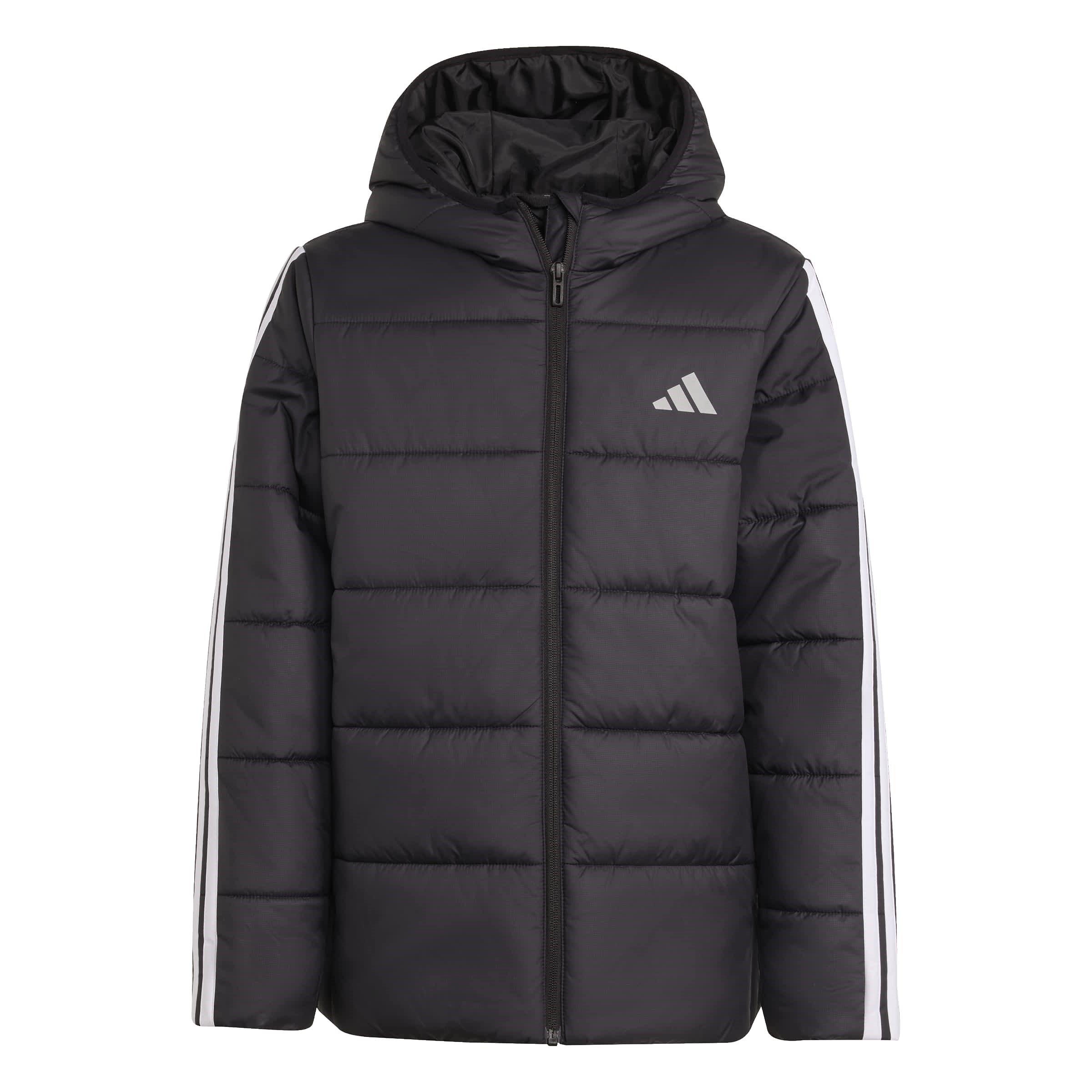 Mantén a tus hijos abrigados con la chaqueta acolchada con capucha Essentials 3S Unisex de adidas. Este abrigo acolchado ofrece calidez práctica con un estilo clásico, con las tres franjas a lo largo de las mangas y el logo de adidas en el pecho. El relleno ligero y los acabados elásticos proporcionan comodidad sin restringir el movimiento.