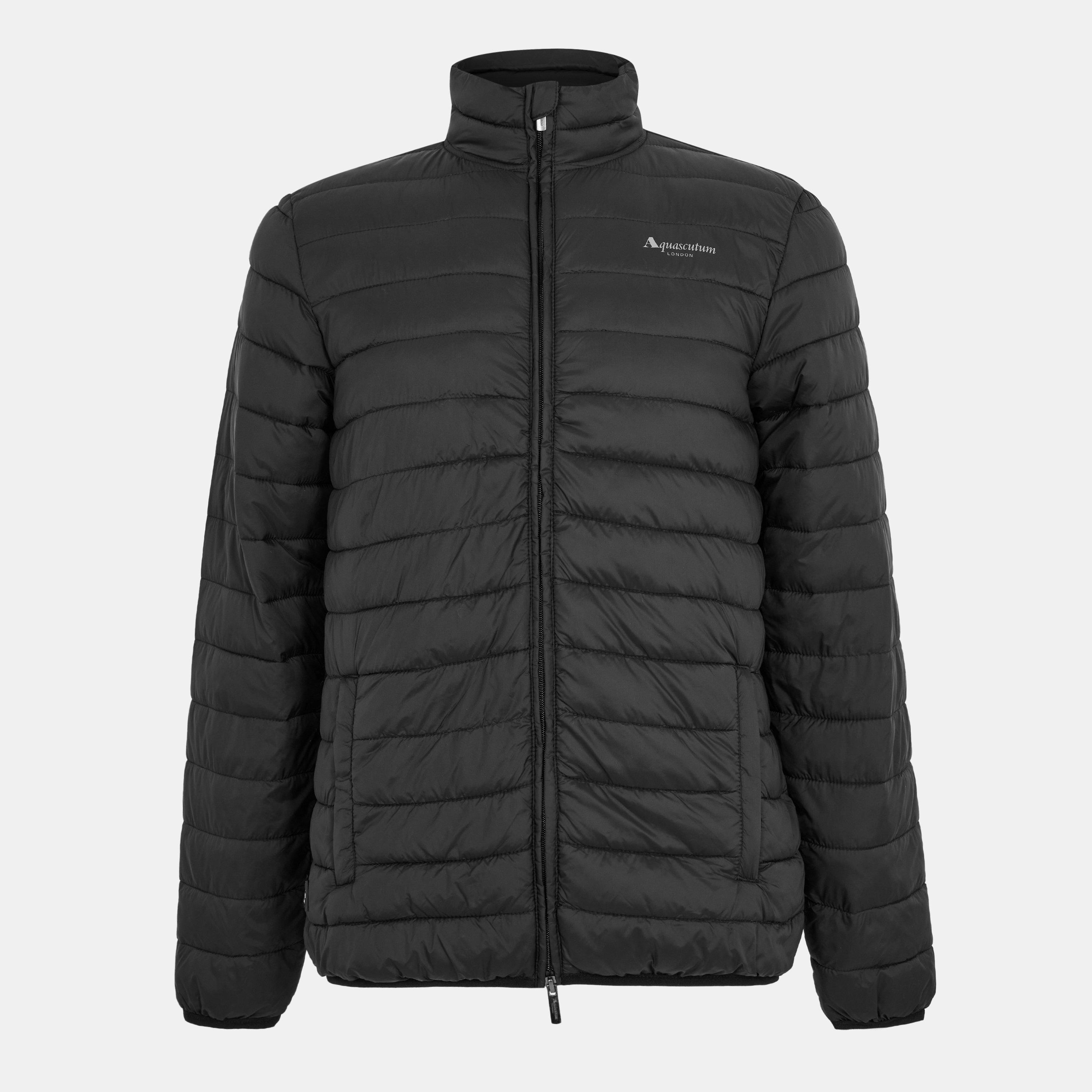 La chaqueta acolchada de manga larga Aquascutum de tamaño mediano ofrece calidez práctica. El diseño panelado asegura una distribución uniforme del aislamiento ligero, mientras que el cuello tipo embudo añade protección contra los elementos. El diseño elegante hace que esta chaqueta sea una adición simple a tu vestuario de clima fresco.