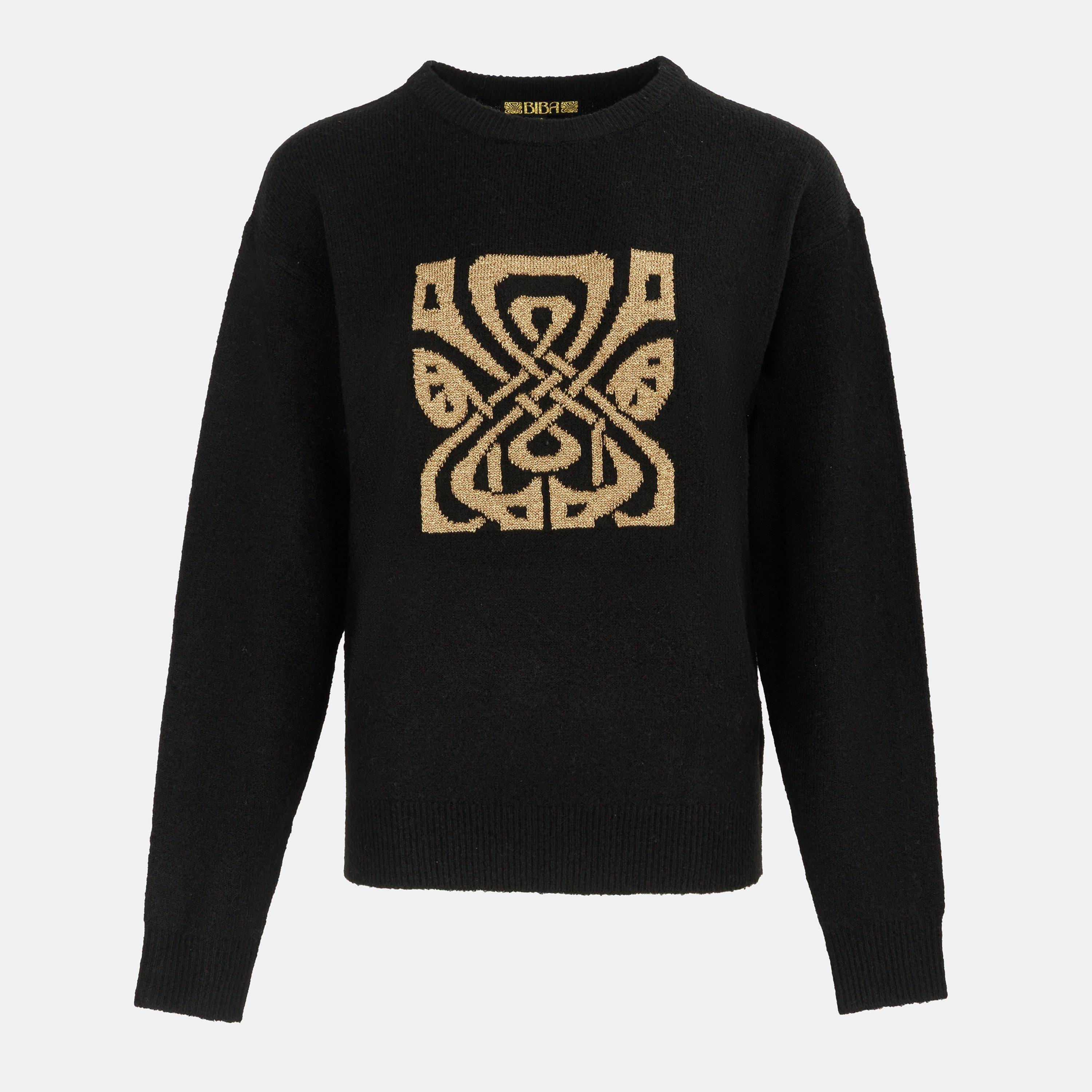 BIBA's Knitwear Front Panel Lurex Jacquard Knit Crew is an ideal choice for stylish gatherings or festive celebrations. This eye-catching piece adds a touch of elegance to any outfit, making it perfect for both formal events and casual get-togethers.