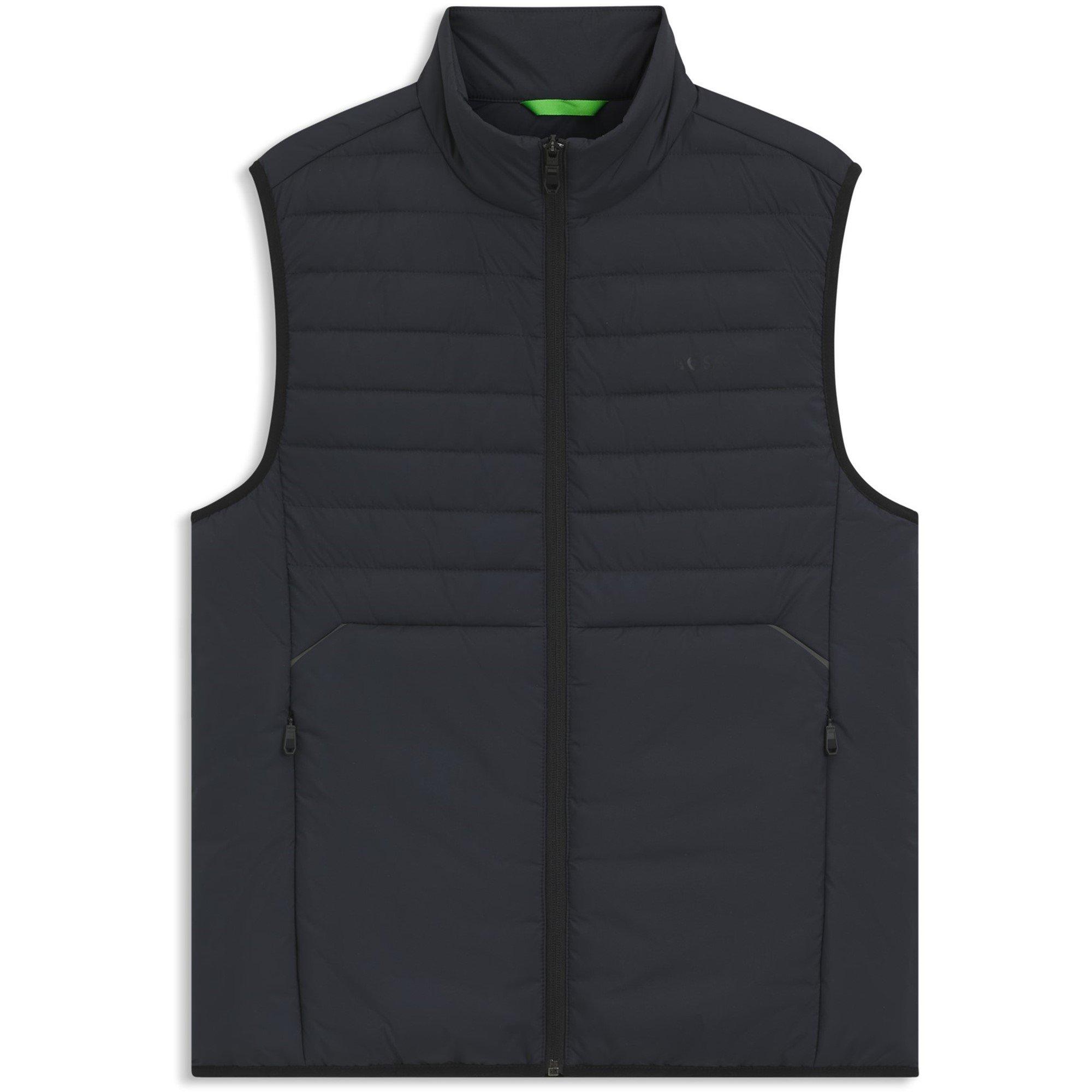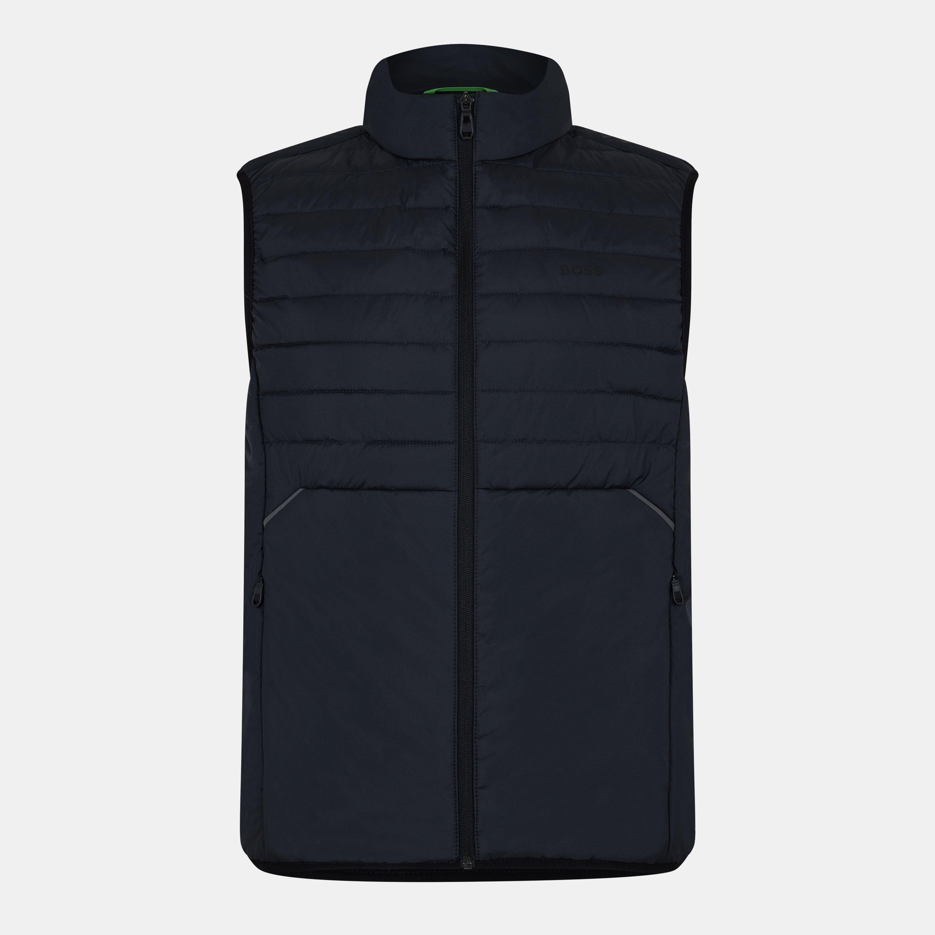 El chaleco sin mangas acolchado resistente al agua BOSS Urbanex ofrece calor esencial con acolchado horizontal. Este chaleco exterior minimalista cuenta con un cuello alzado protector y cierre de cremallera completa, proporcionando aislamiento ligero con una forma estilizada para el uso estacional y un estilo casual. Ideal para llevar debajo de una chaqueta o como una alternativa ligera a una chaqueta en condiciones más suaves.