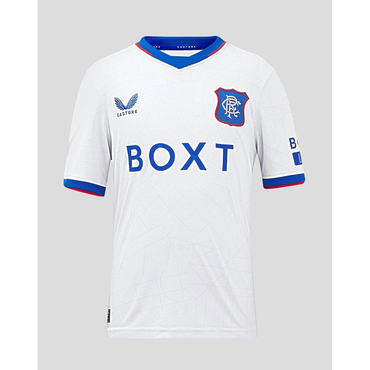 Confeccionada con un sutil diseño gris claro con detalles en azul y rojo, esta camiseta destaca entre la multitud mientras se mantiene fiel a los colores icónicos de los Rangers. Con el escudo de los Rangers y la audaz marca Castore a ambos lados del pecho, añade una aura de autenticidad y distinción. Ya sea que tu joven campeón esté animando desde las gradas o jugando con todo su corazón en el campo, la Camiseta de Visitante de los Rangers 2024-2025 está diseñada para amplificar su pasión por el juego.