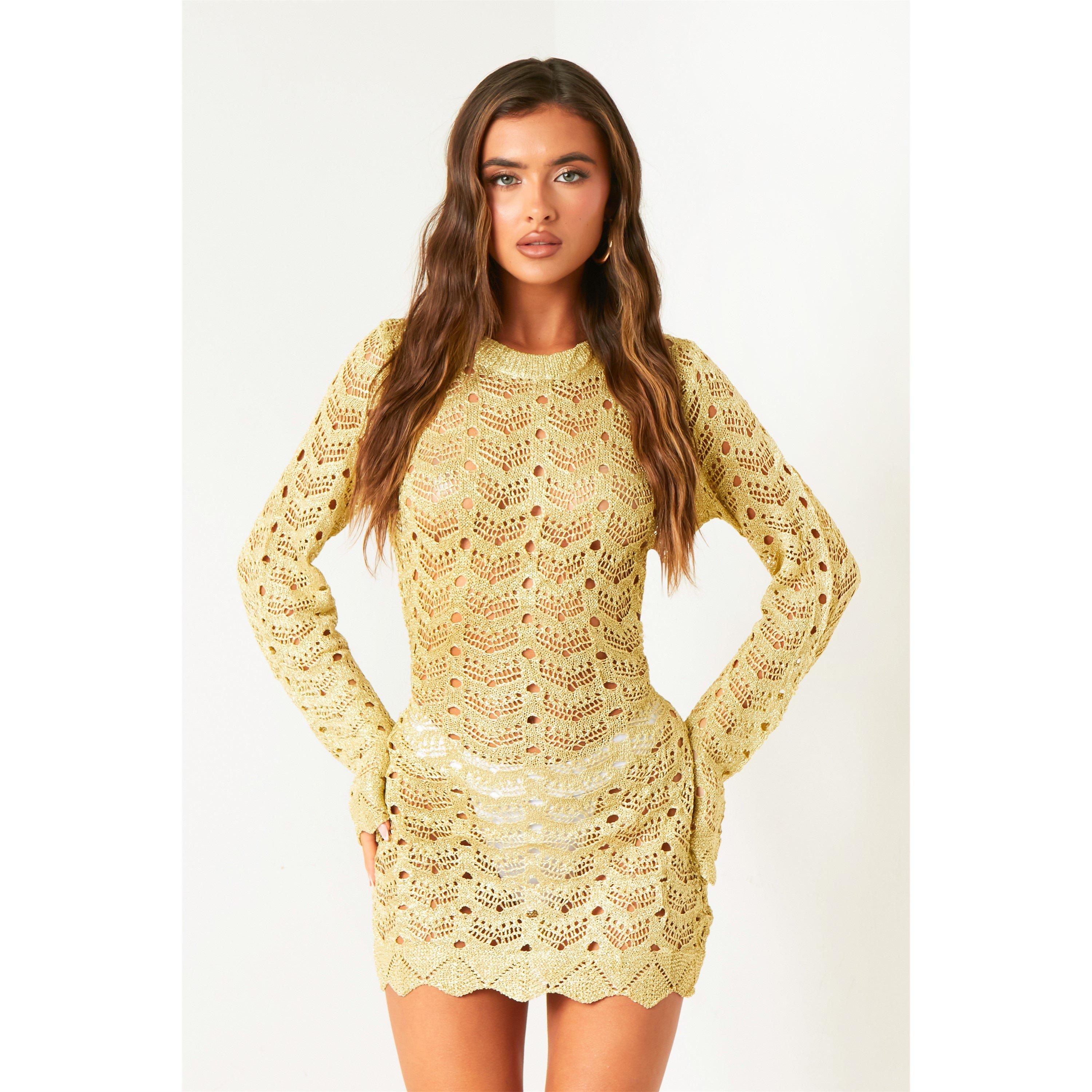 Missy Empire Crochet Knitted Open Back Mini Dress
