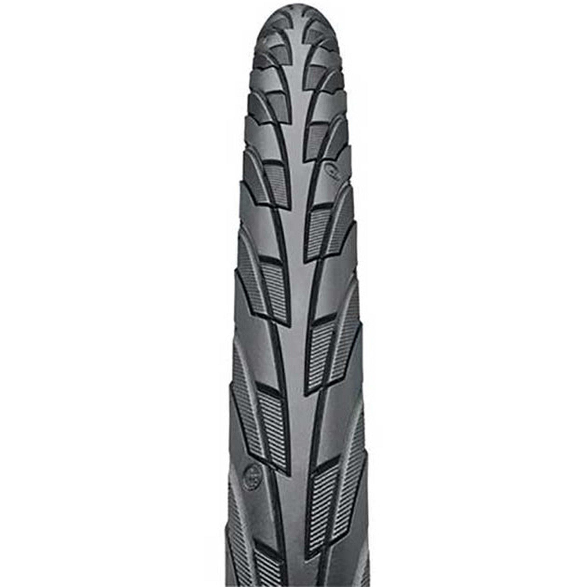 The Continental CONTACT Tyre is a top choice for urban cyclists, hybrid bike riders, and touring enthusiasts seeking a perfect balance of speed, safety, and durability. Built for everyday performance, this tyre ensures smooth rolling on tarmac and dependable grip on wet, loose, or uneven surfaces like gravel paths and towpaths. Its uniform centre tread delivers efficient riding, while flexible shoulder lugs with fine sipes provide superior traction in challenging conditions. Designed with a tough gumwall sidewall, the CONTACT resists urban wear and handles the extra load of tandem bikes. The ultra-fine polyamide carcass minimizes rolling resistance for enhanced comfort and efficiency. Fully E-bike compatible, this tyre helps extend battery life and ensures a reliable ride day after day.