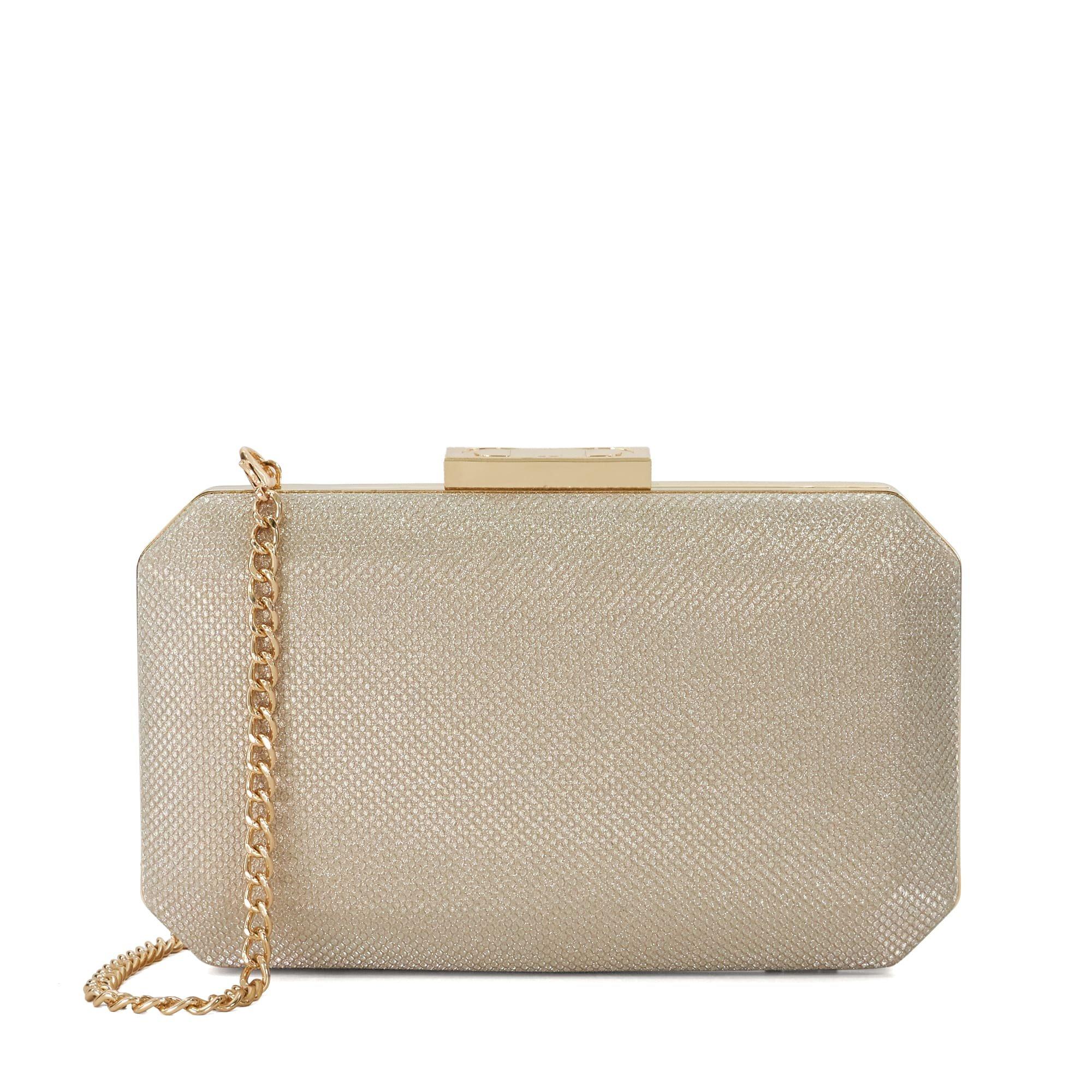 Dune London's Bestieo Clutch Handbag features a compact design with secure fastening, offering multiple carrying options. The streamlined shape showcases designer detailing from this established brand.