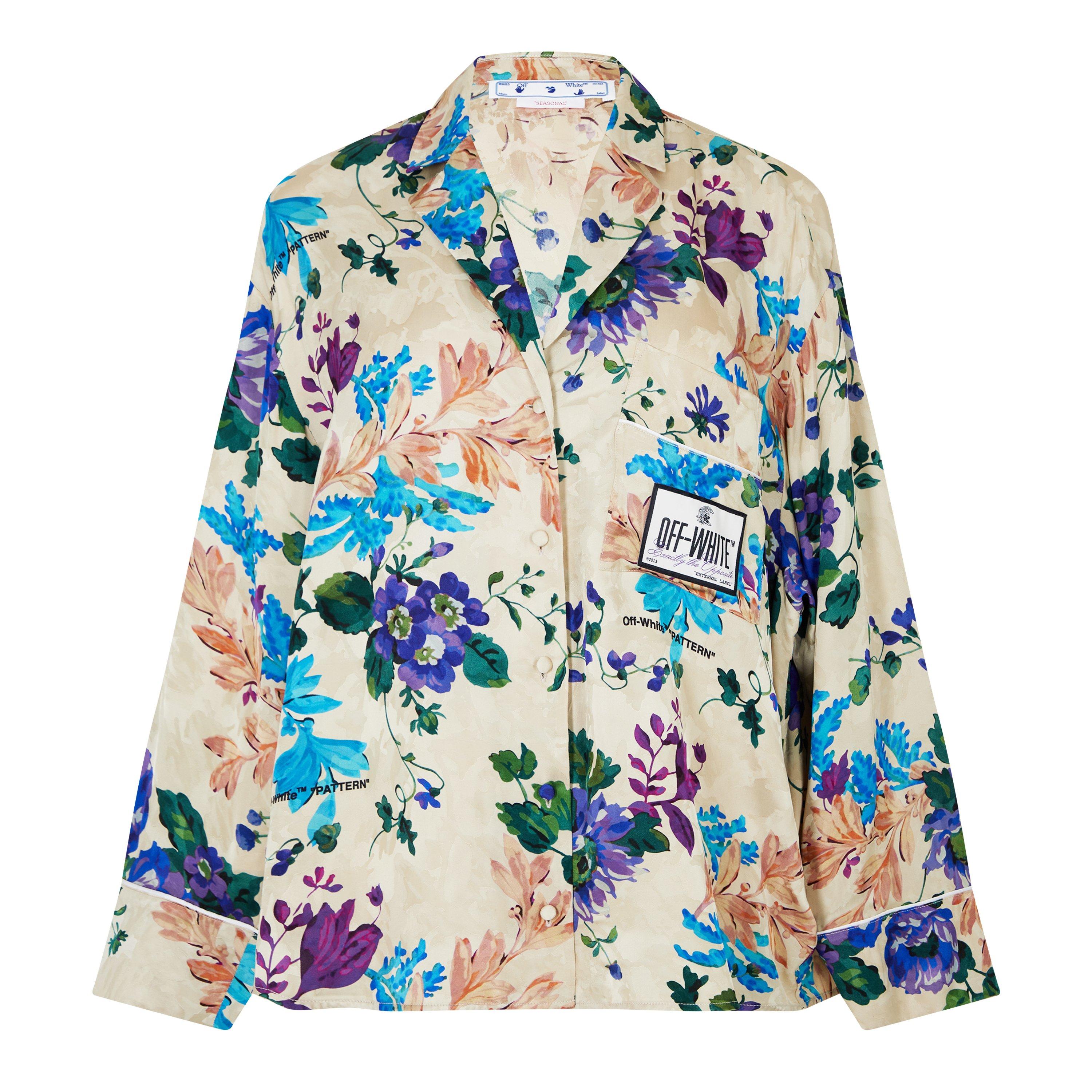 Off White Women's Pyjama Floral Viscose Long Sleeve Shirt