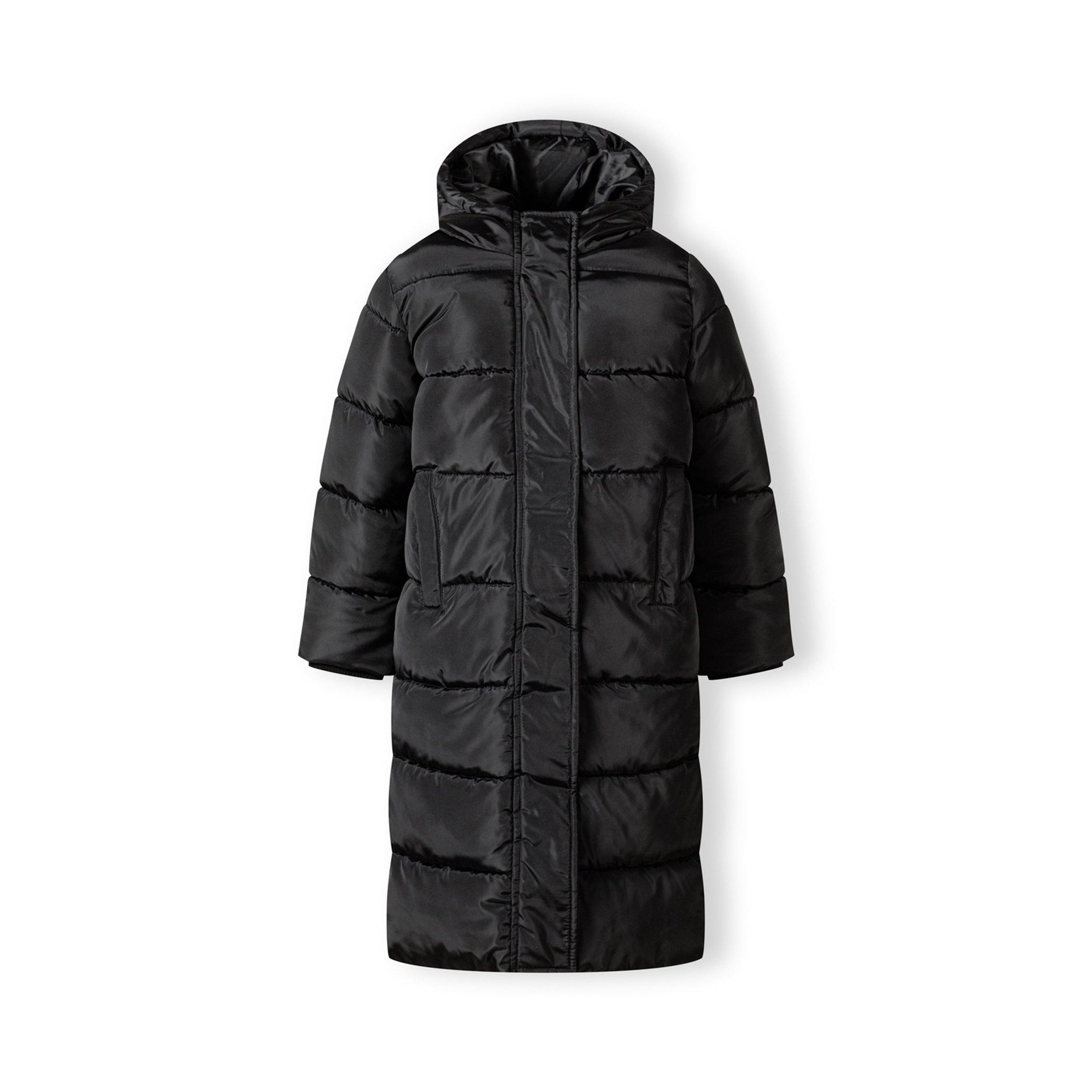 Minoti Girls long winter quilted coat with hood and side slits black