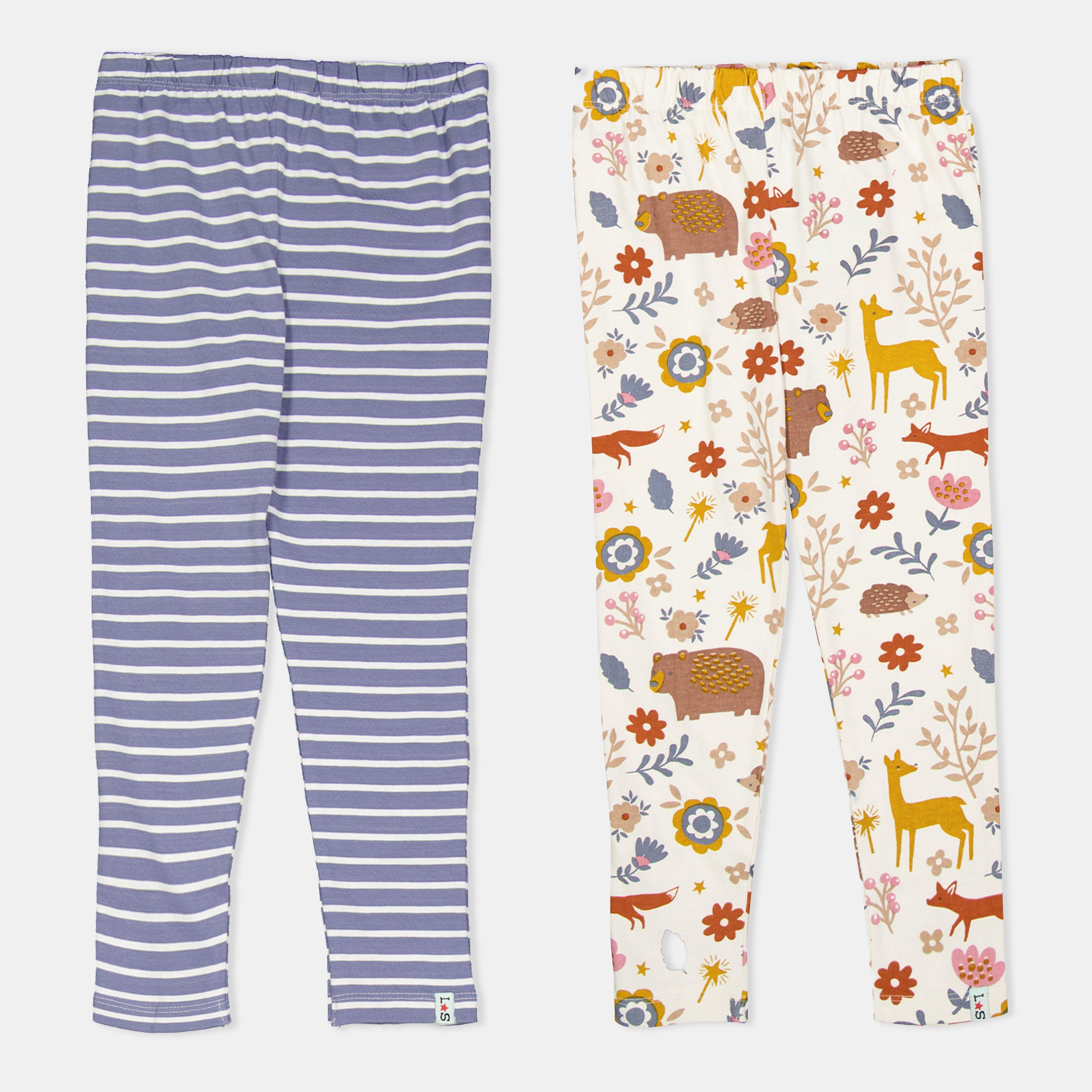 Lilly and Sid Lilly & Sid Multicoloured Animal Forest And Stripe Print Leggings - 2 Pack