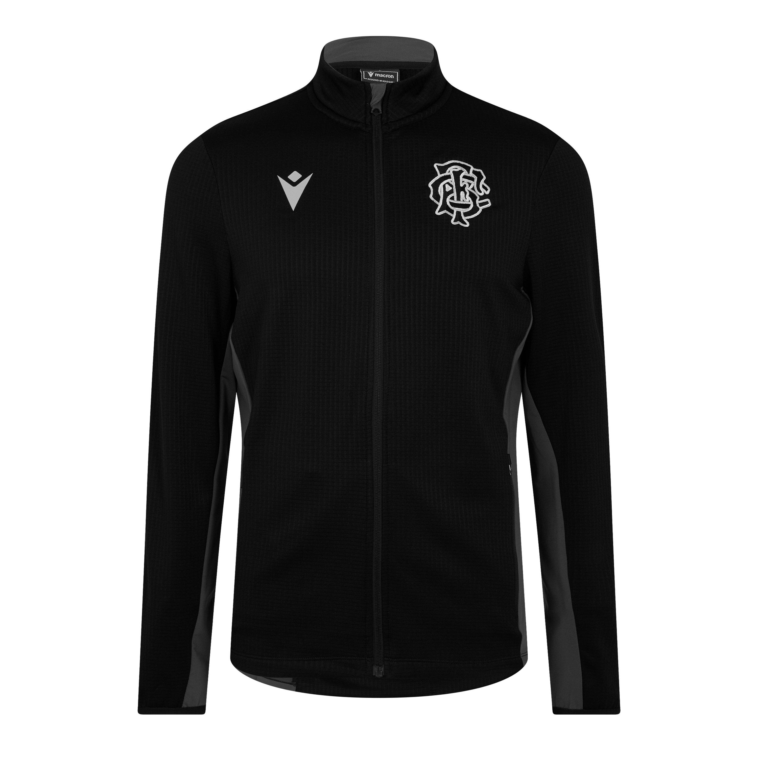 Macron Men's Barbarians 2024-2025 Cotton Full Zip Stand Collar Slim Fit Rugby Jacket