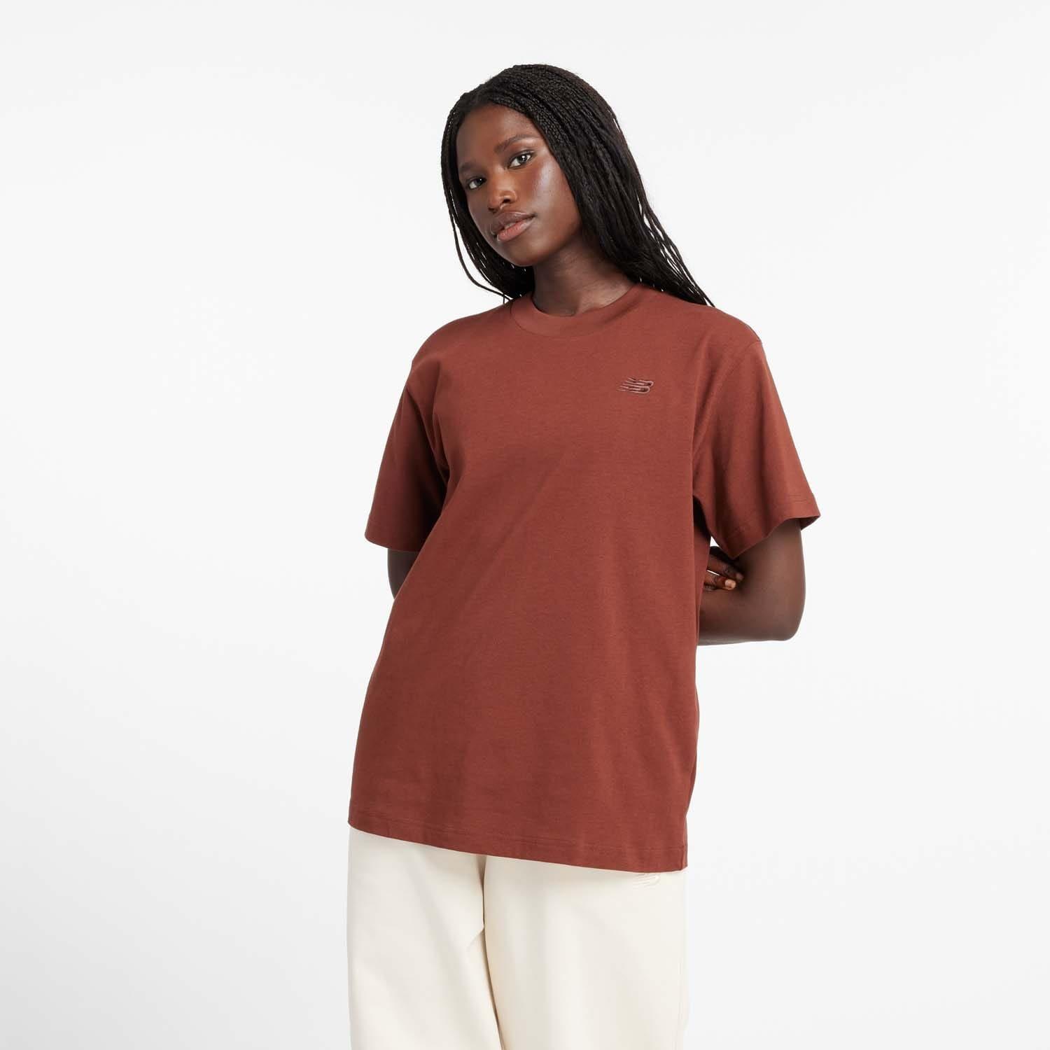 Camiseta de atletismo New Balance para mujer en roble rico.