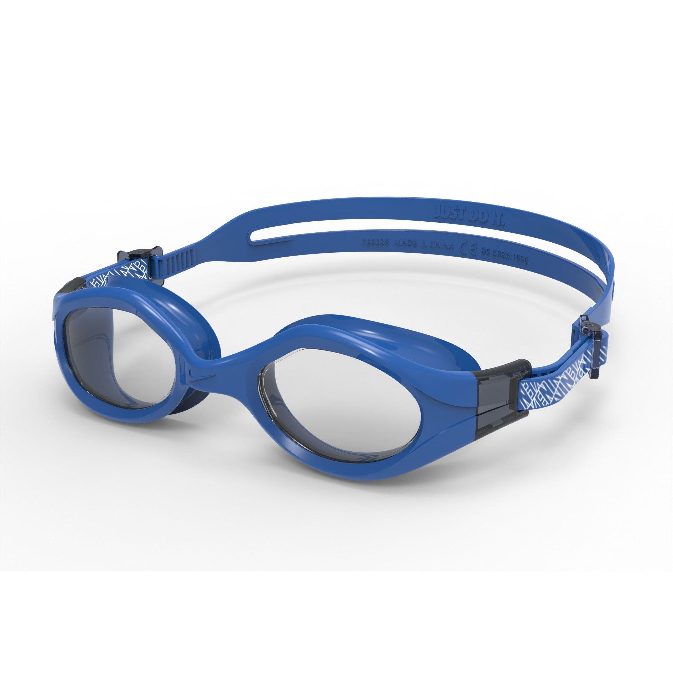 Whether you're gearing up for a day at the beach or a training session at the pool, keep the rays at bay with these goggles. The mirrored coating helps protect against UV rays and reduces glare while the curved, panoramic lenses enhance vision and clarity. The soft flexible design will contour to your face to provide a comfortable and effective seal. Large, soft gaskets reduce pressure around the eyes. The Nike Swift Adjust buckle makes it easy to adjust the strap quickly so you can find the perfect fit for YOUR face.