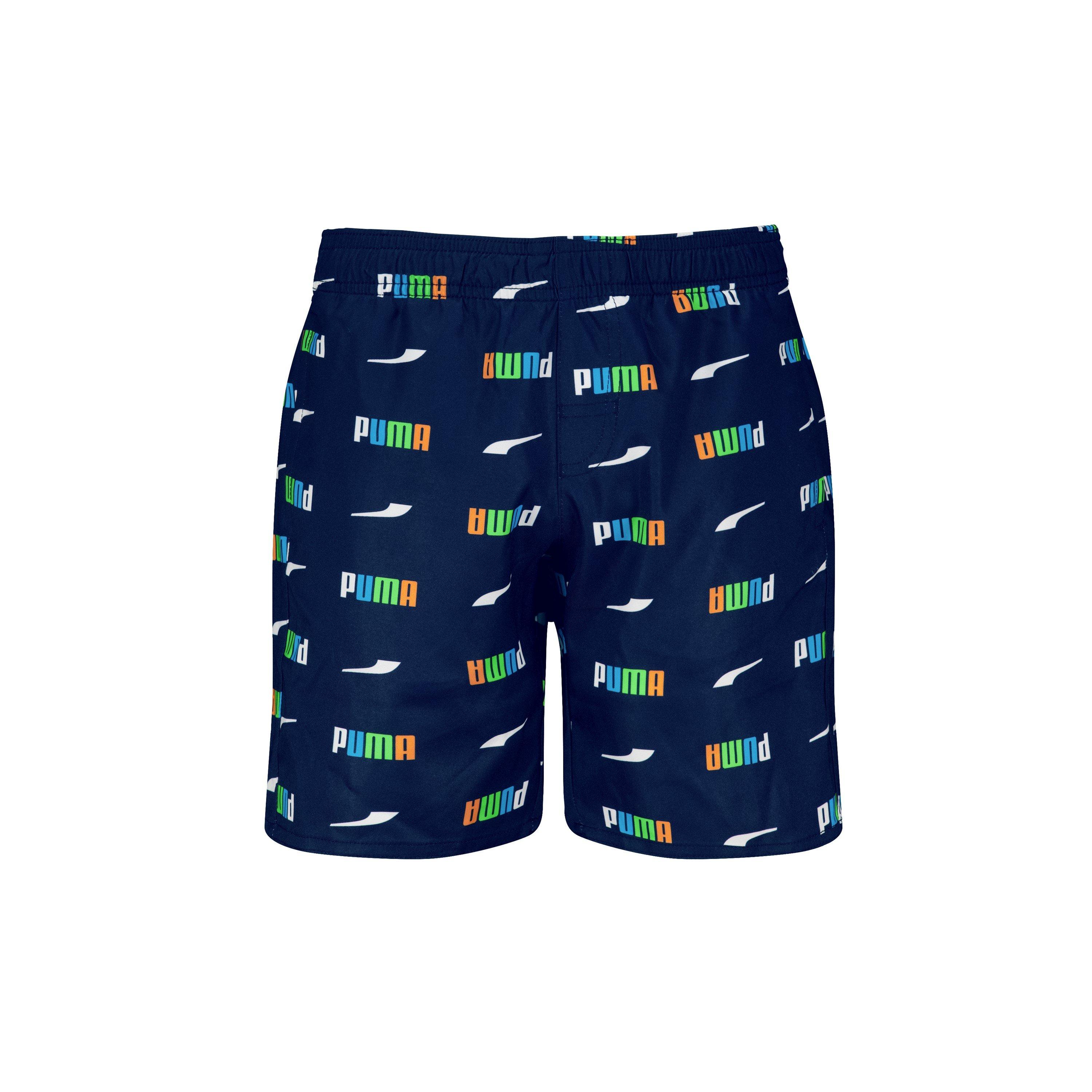 Los pantalones cortos de baño impresos para niños de Puma presentan patrones divertidos y un diseño práctico, ofreciendo a los niños ropa de baño para la piscina con tejido de secado rápido y un ajuste cómodo para niños activos.