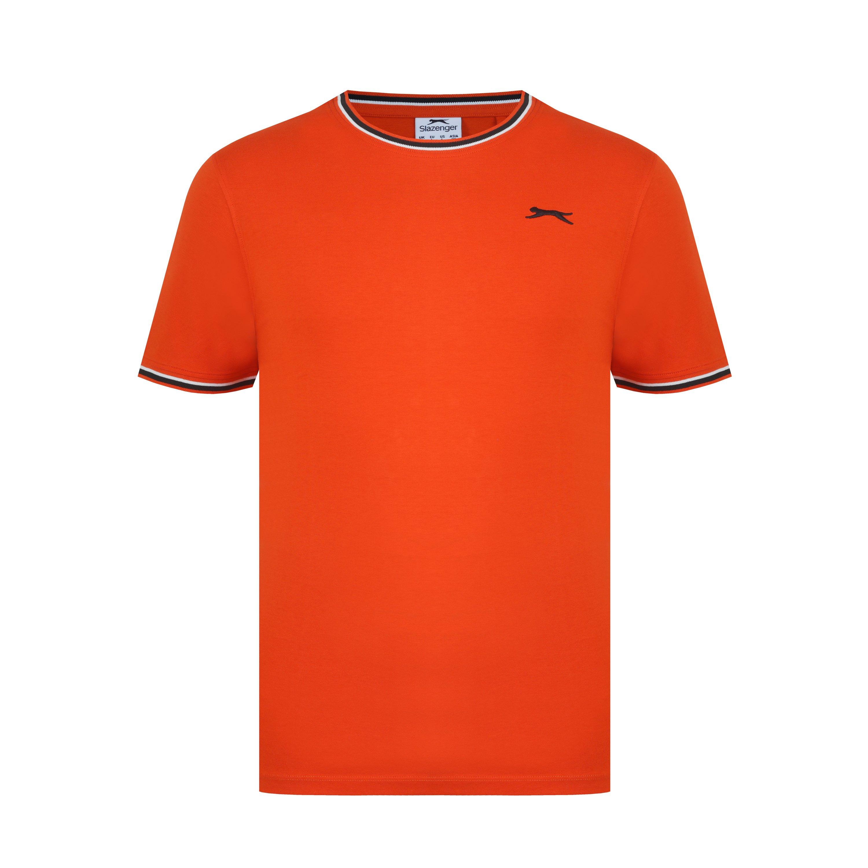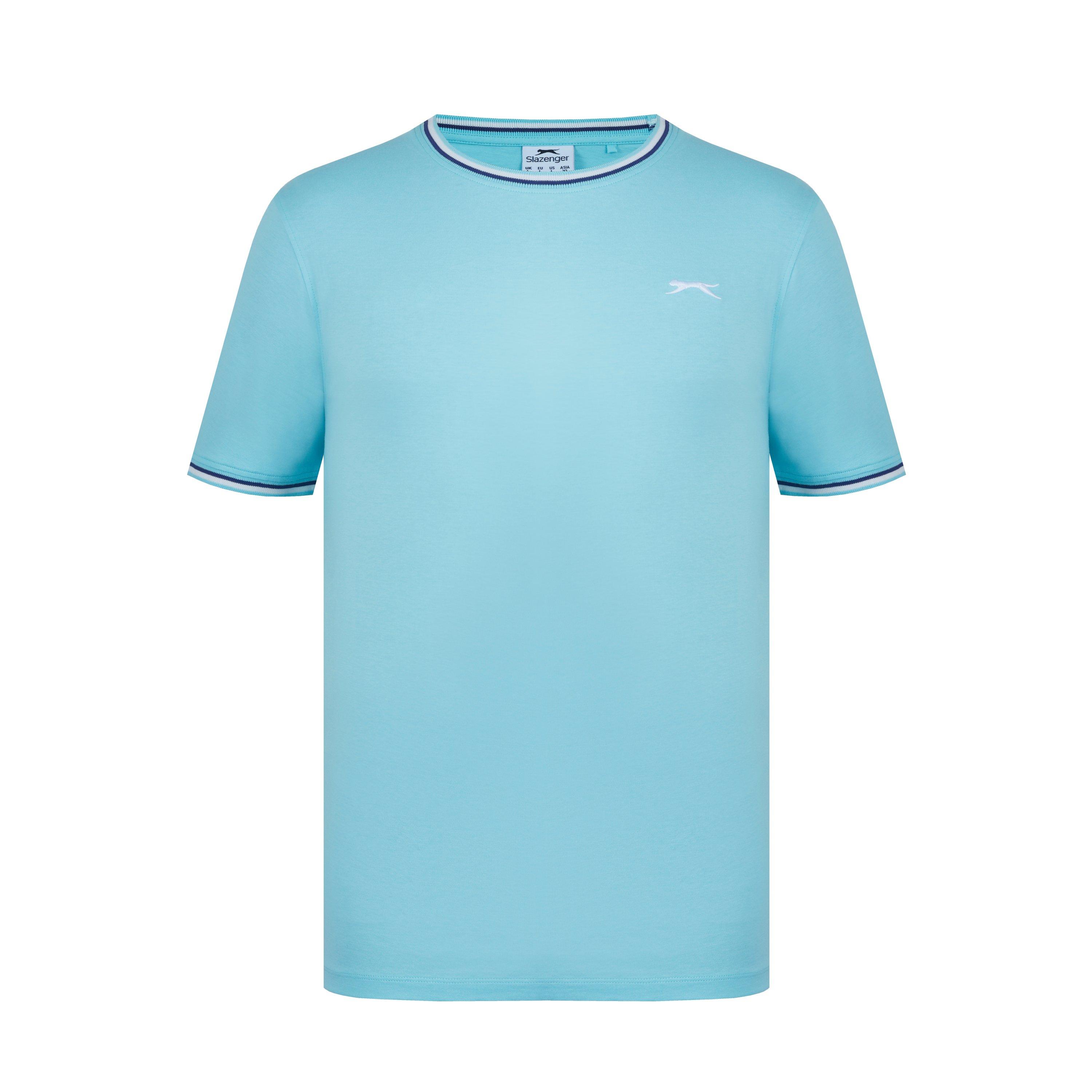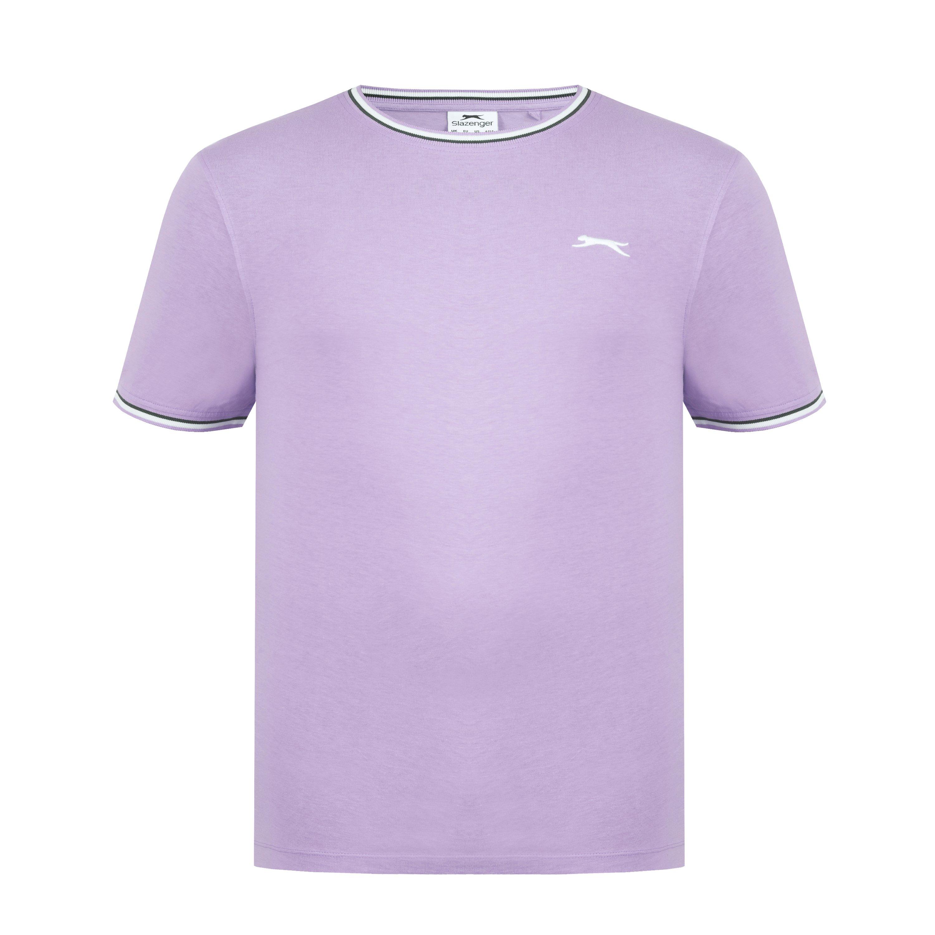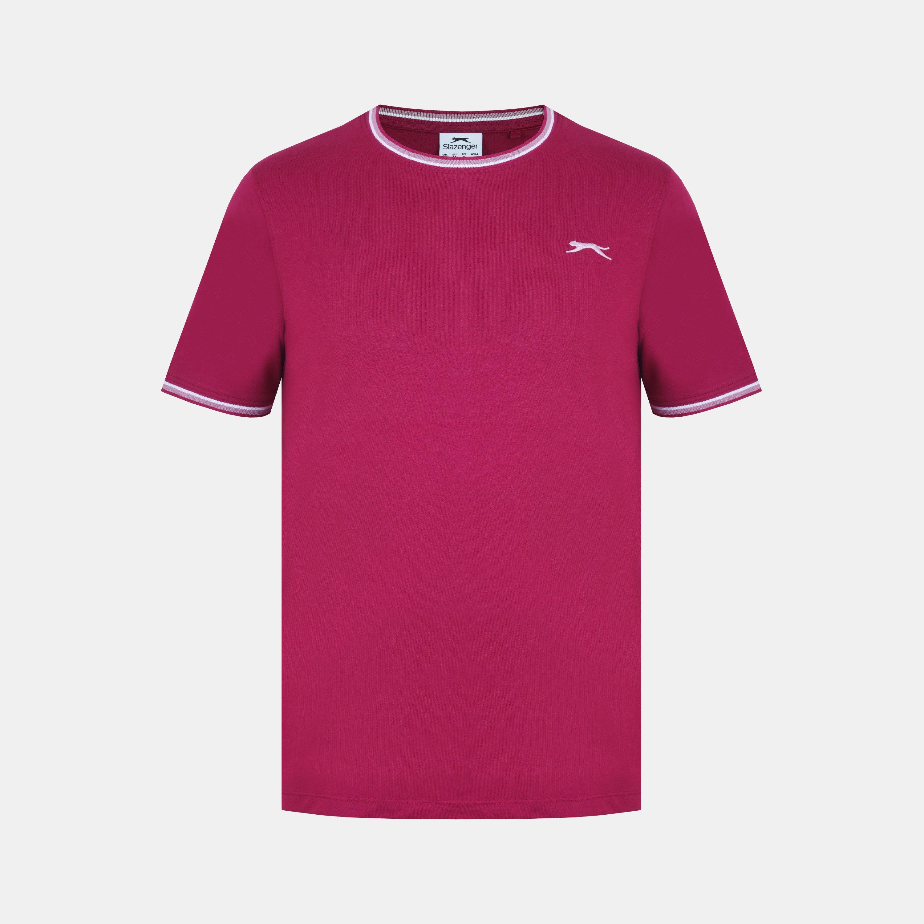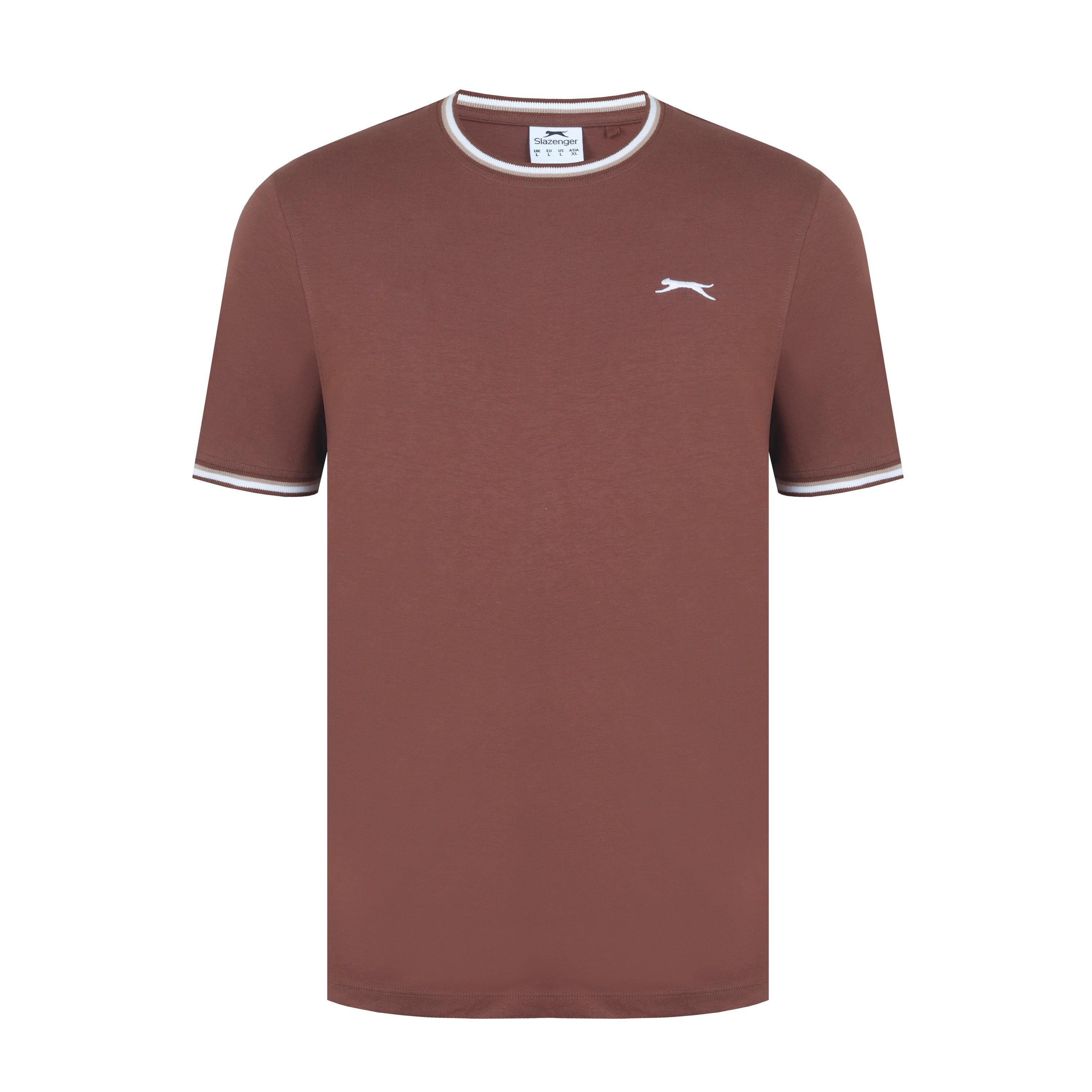 Camiseta de hombre Slazenger con ribete Esta camiseta Slazenger con ribete presenta mangas cortas con un puño acanalado con ribete para un toque de color. Cuello redondo con ribete para un aspecto clásico. Ajuste cómodo y construcción ligera. Esta camiseta está diseñada con un logotipo 3D bordado en el pecho para la marca distintiva Slazenger. 100% algodón