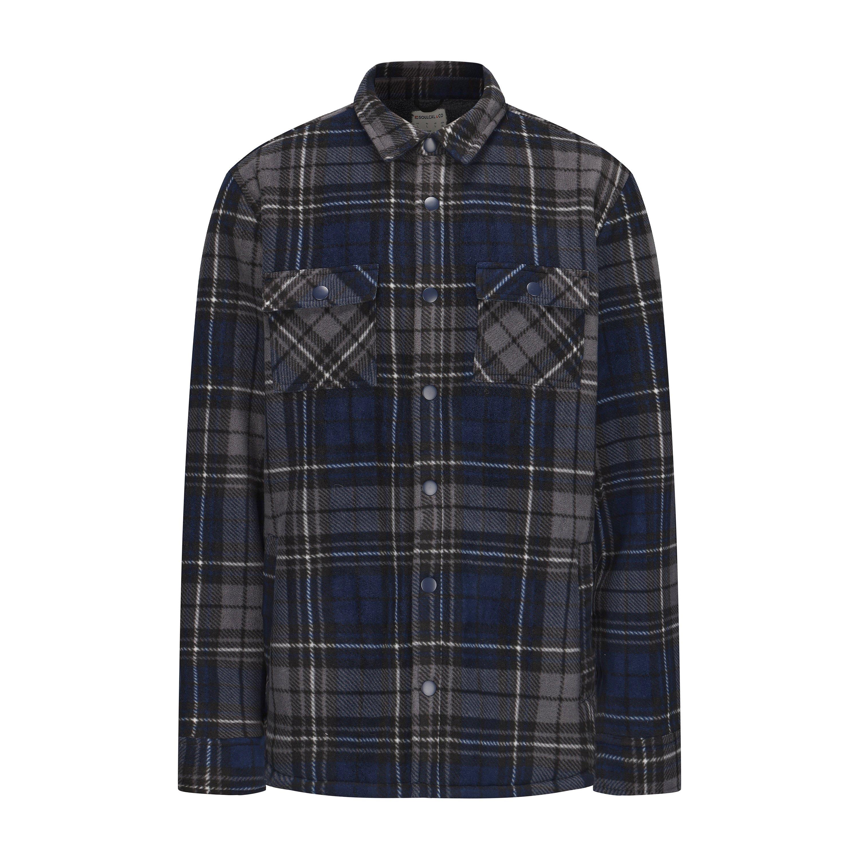 - Clásico patrón de cuadros con cuello alzado y puños de barril, equilibrando estilo y función.
