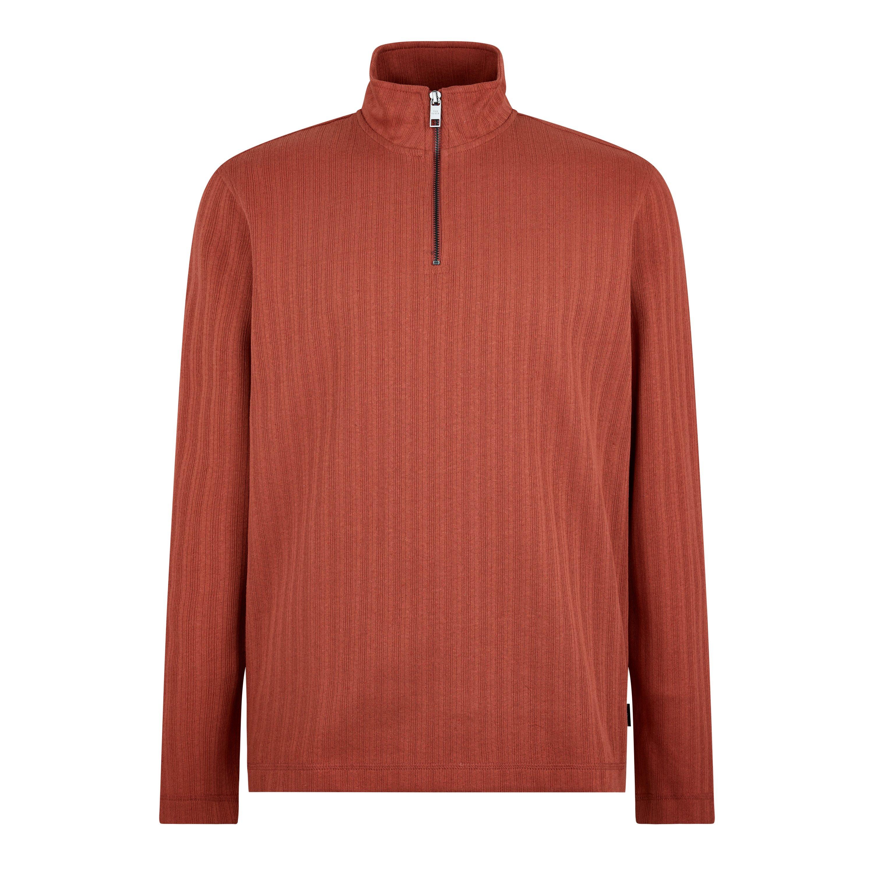 La camiseta polo de hombre de manga corta con cremallera de Ted Baker combina un minimalismo elegante con detalles contemporáneos, presentando un cuello con cremallera de cuarto que la convierte en un esencial moderno del armario.