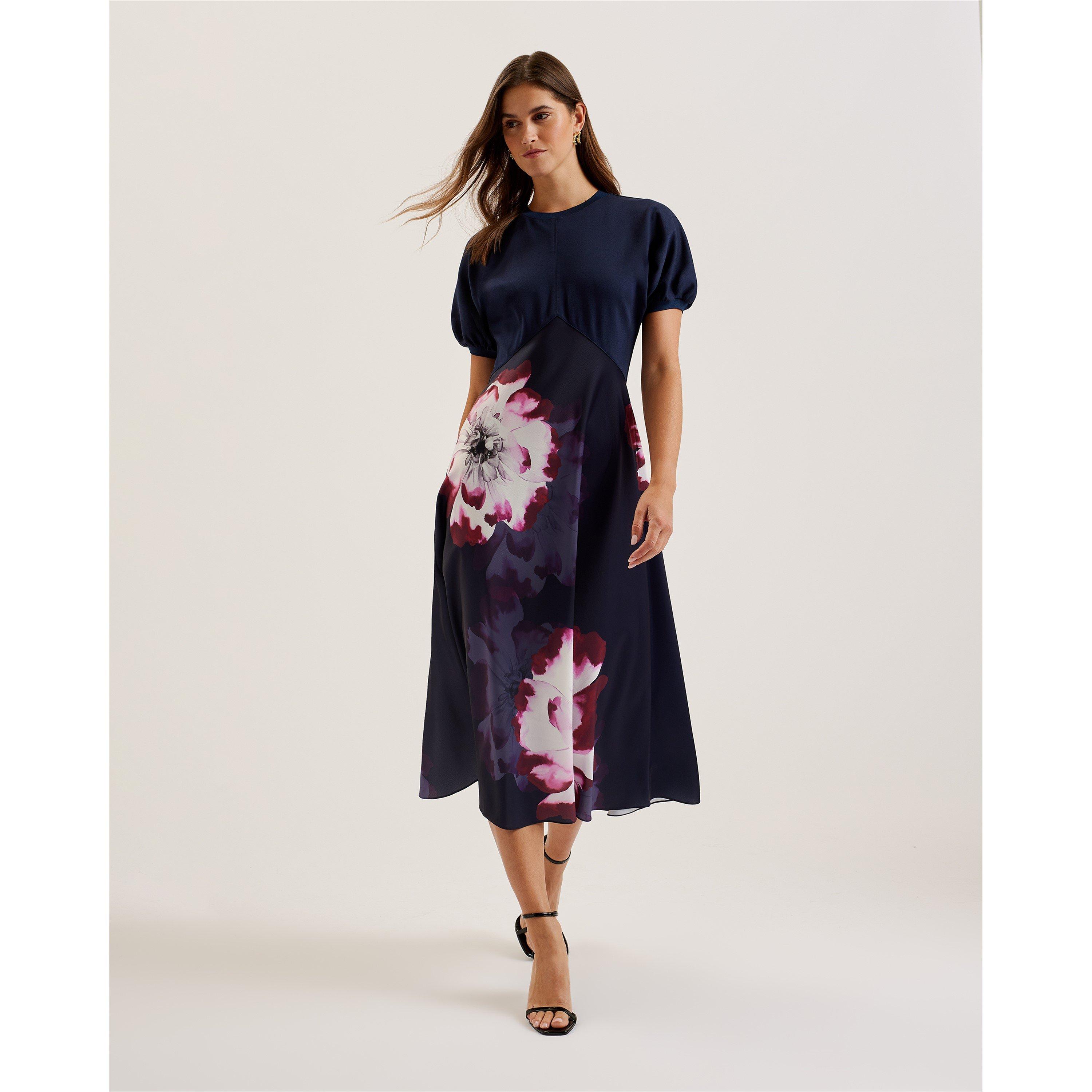 El vestido de té impreso Mitzic de Ted Baker combina patrones florales clásicos con una forma duradera. El vestido presenta un diseño estructurado con un corte detallado que moldea la figura.