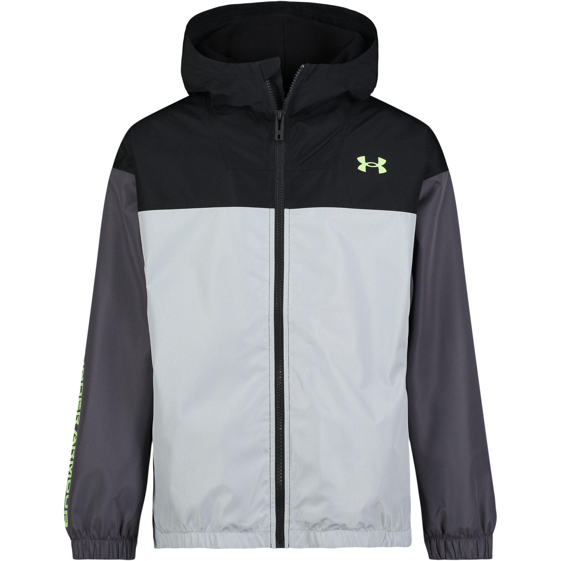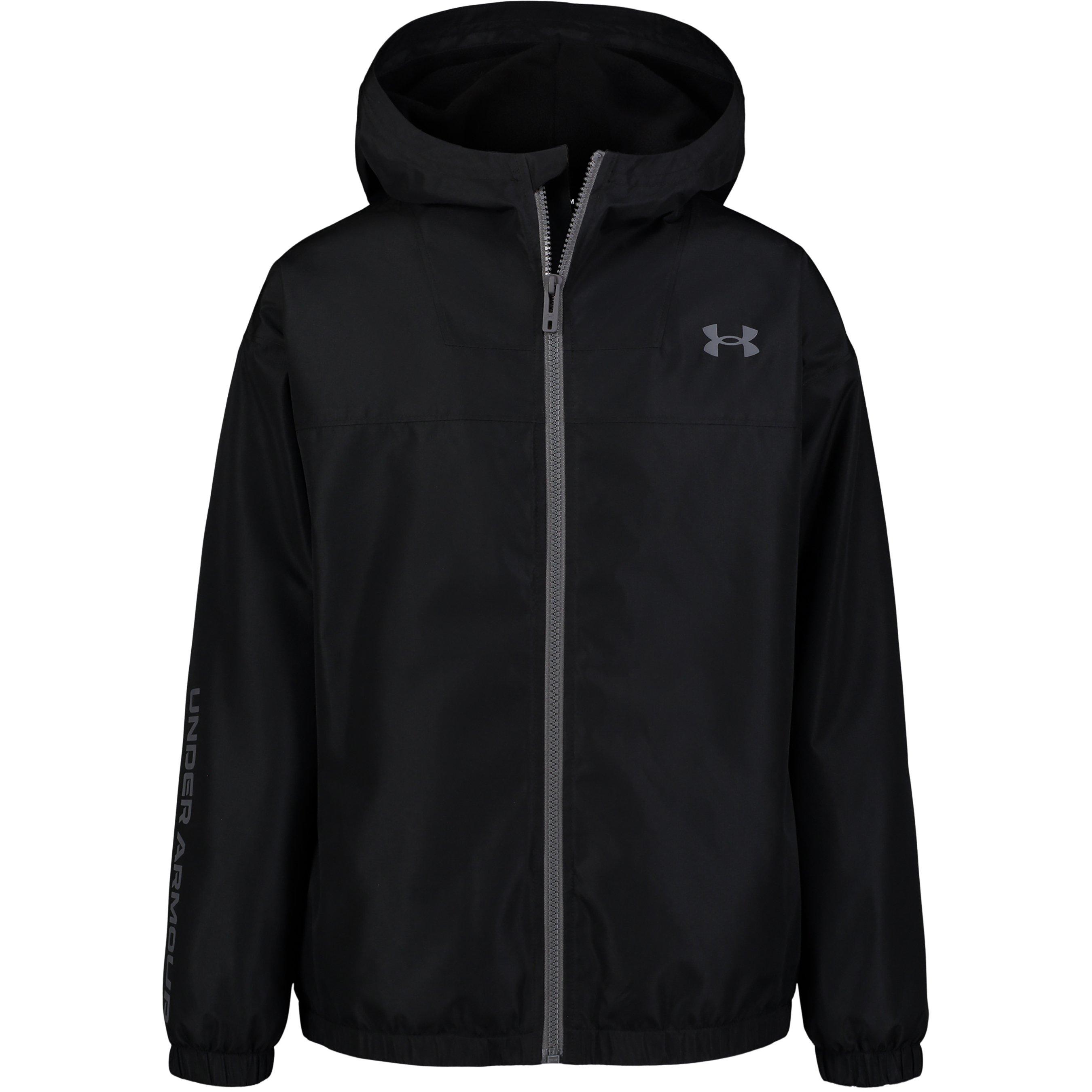 El anorak de lluvia con capucha y manga larga para niños de Under Armour ofrece protección contra los elementos para niños y jóvenes aventureros. Con un diseño de cremallera completa y el logo de UA en el pecho, esta chaqueta de longitud cadera incluye una capucha integrada y dos bolsillos que mantienen los elementos esenciales seguros durante la exploración al aire libre. Diseñada para una variedad de actividades al aire libre, es ideal para niños activos.